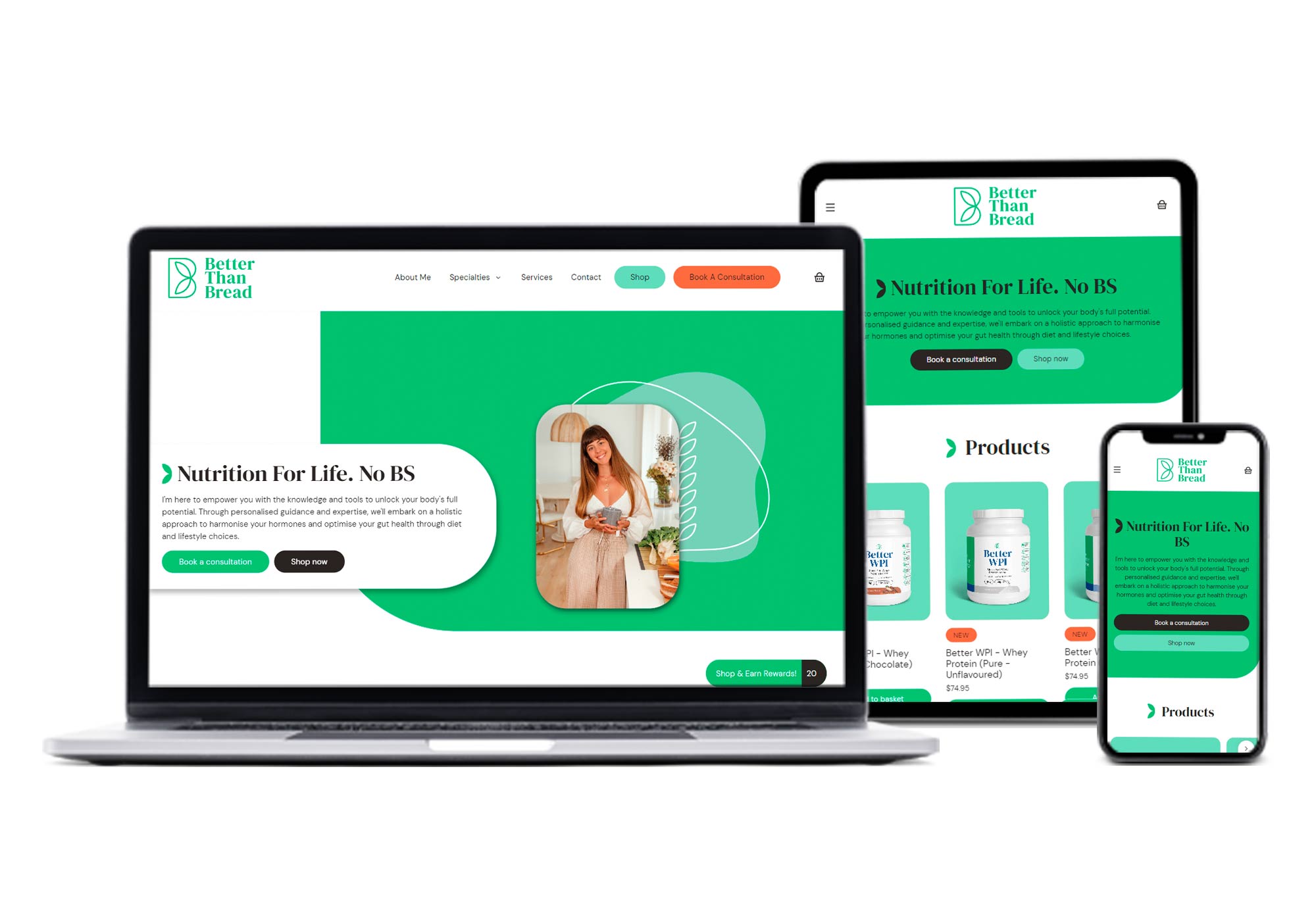 E-commerce Functionality: Facilitate seamless online sales for Better Than Bread’s nutritional products.