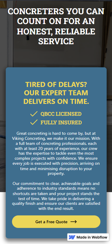 We delivered a modern, conversion-focused website that clearly showcases their concreting services and guides visitors toward making contact. The site was built to support lead generation from day one, helping turn online traffic into real job opportunities.
